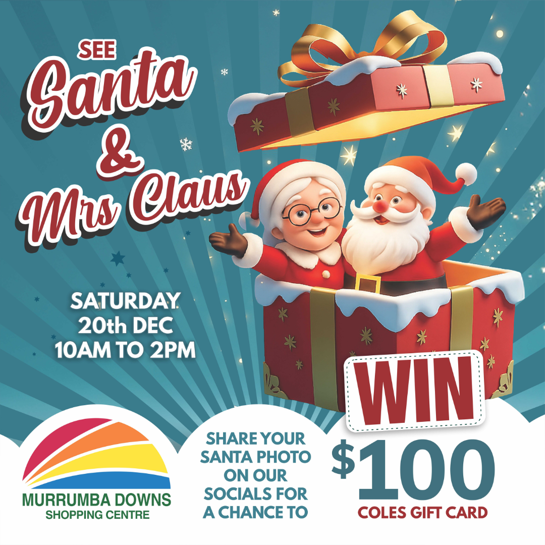 Lights, camera, Christmas! Snap your selfie with Santa & Mrs Claus on Saturday, Dec 20th, between 10am and 2pm! No bookings required.
